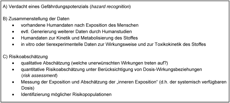 Tabelle 2: Vorgehen bei einer toxikologischen Risikoabschätzung