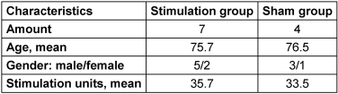 The two study groups compared in this study were statistically similar to baseline. However, a limitation of this study is that the groups differ in numbers because there are more patients in the stimulation group and the overall number of patients was small.