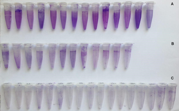 Strong biofilm formation was only observed in the colistin-susceptible strains (Table 3 [Tab. 3]). These three groups observed in the micro-tubes are depicted in Figure 1 [Fig. 1]. P. aeruginosa ATCC 27853 possesses ppk and modA, and strong biofilm formation was observed.