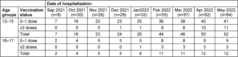 Table 4: Vaccination status (at least 2 doses) in children by two age groups and time of hospitalization