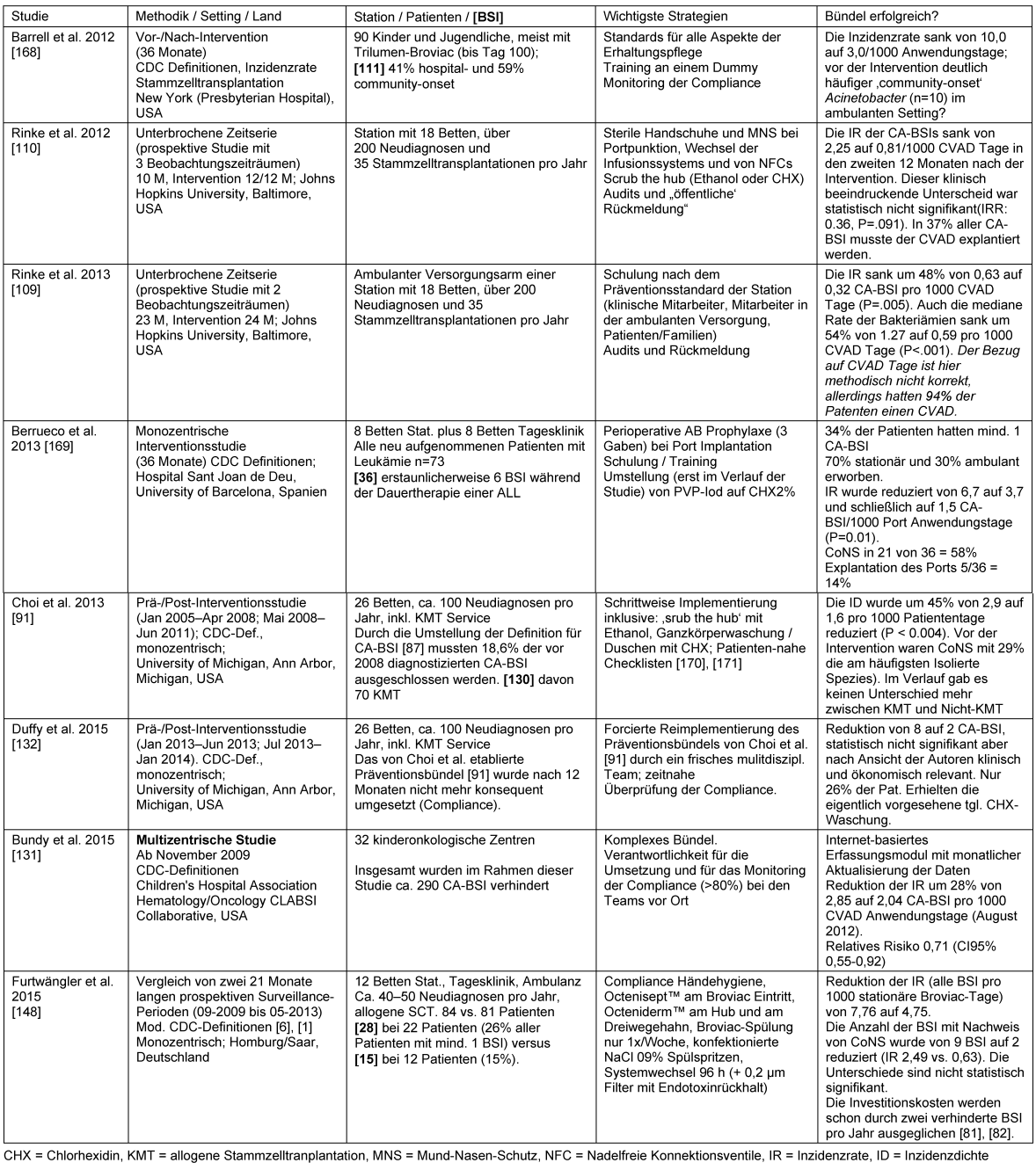 Tabelle 1: Surveillance von Blutstrominfektionen in der Kinderonkologie (ausgewählte Studien)