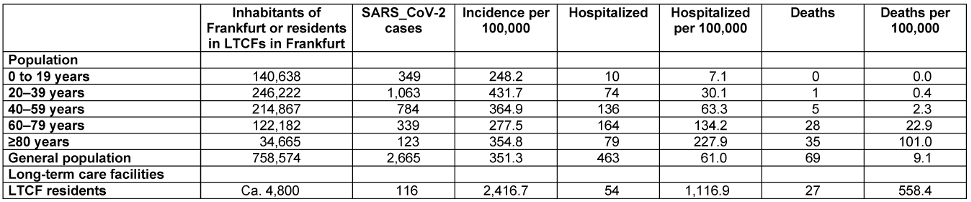 Table 1: Age-related incidences in the general population and LTCF residents (as of 28.08.2020)