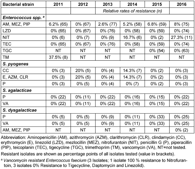 Table 3: Other common gram-positive bacterial strains from 2011–2016