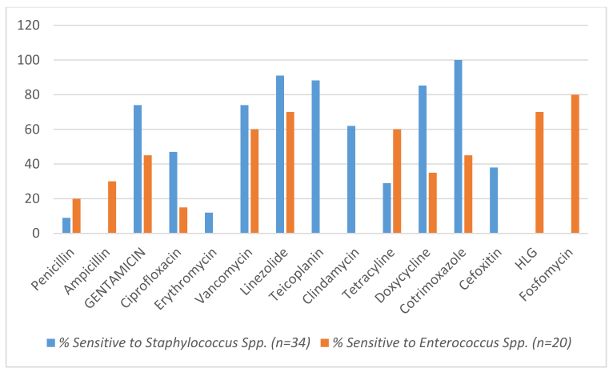 Figure 2: Sensitivity (%) of Gram-positive bacteria (n=54)