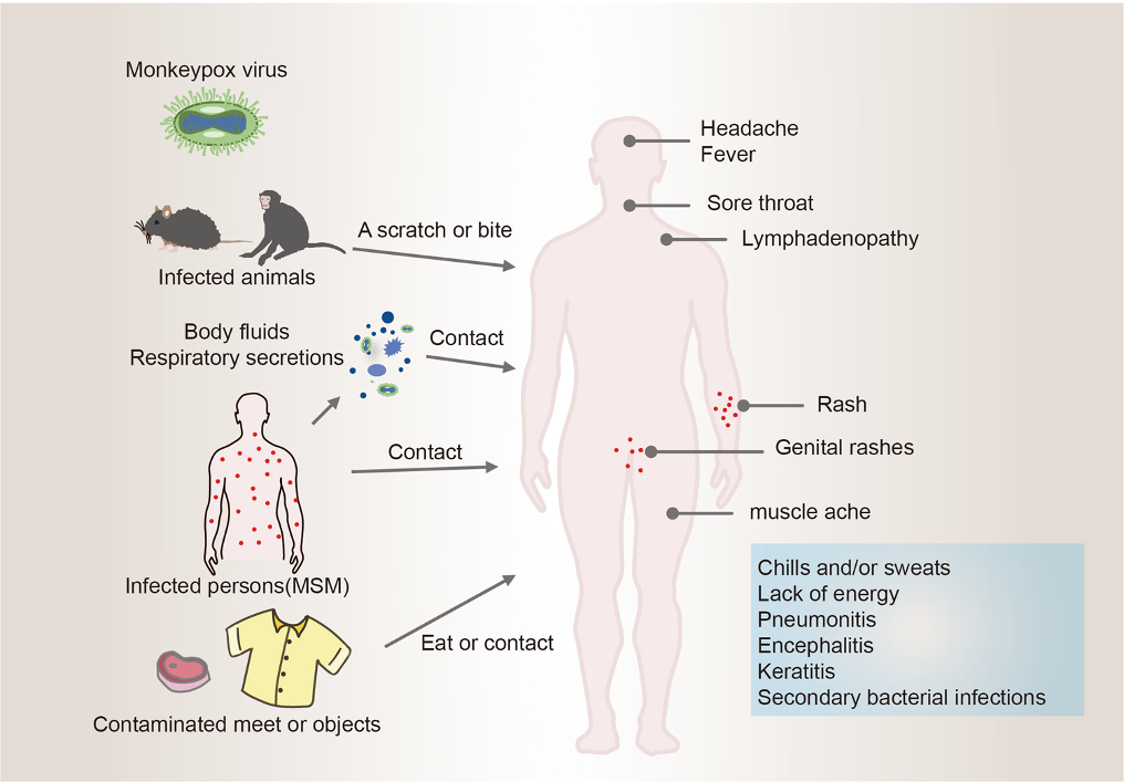 Figure 5: Transmission routes and clinical characteristics of monkeypox (adapted from [61])