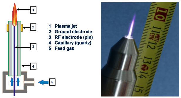 Abbildung 2: Links: Schema des Plasma-Pens; rechts: Plasmajet kINPen09