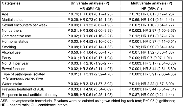[72] Cai T, Mazzoli S, Migno S, Malossini G, Lanzafame P, Mereu L, Tateo S, Wagenlehner FM, Pickard RS, Bartoletti R. Development and validation of a nomogram predicting recurrence risk in women with symptomatic urinary tract infection. Int J Urol. 2014 Sep;21(9):929-34. DOI: 10.1111/iju.12453
