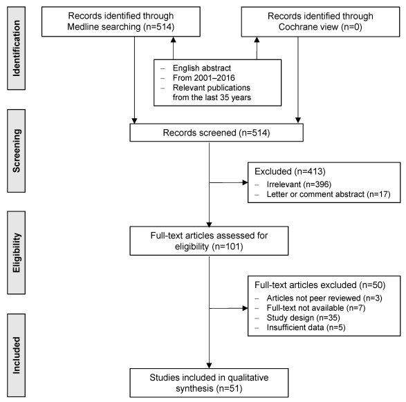 A systematic literature search was performed for the last fifteen years, from 2001 to 2016, in Medline and Cochrane library with the following key words: measurement of antibiotic consumption; antibiotic consumption and antibiotic resistance and (Gram-negative or E. coli or Klebsiella spp. or Proteus spp. or Pseudomonas spp. or Serratia spp. or Acinetobacter spp.); reversal of antibiotic resistance. We also considered other relevant publications from the last 35 years. An English abstract had to be available. A total of more than 500 publications were identified: 87 for the measurement of antibiotic consumption, 324 for the antibiotic consumption and antibiotic resistance in different Gram-negative bacteria, and 103 for the reversal of antibiotic resistance. No Cochrane review was published. The publications were screened by title and abstract. Finally, 51 publications were included into this review (Figure 1 [Fig. 1]).