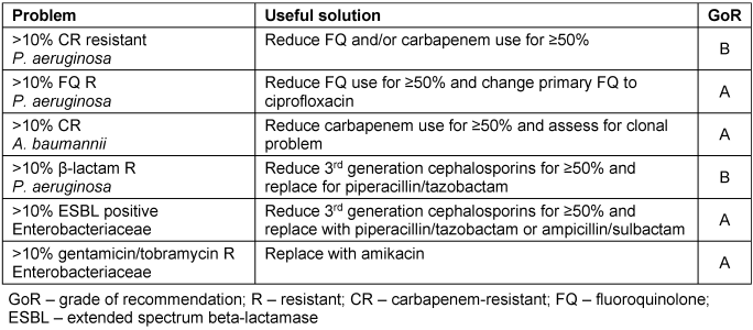 Table 1: Recommendations for management of antimicrobial agent resistance – the goal of using less than 1.5 DDD/100 patient days [24]