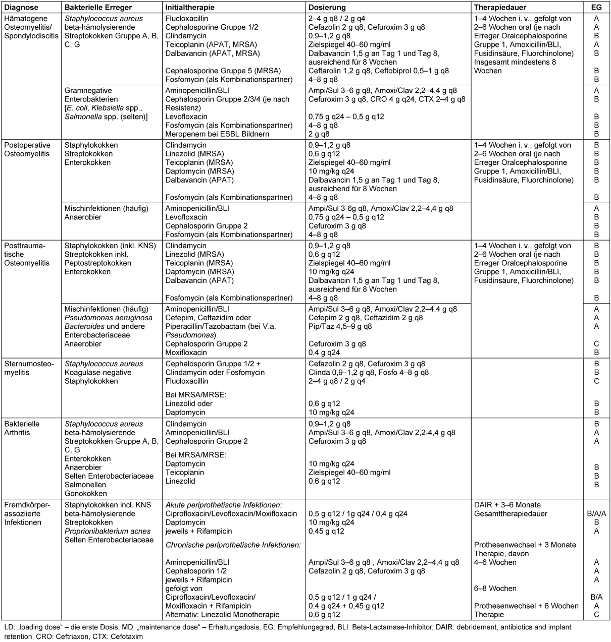 Kalkulierte parenterale Initialtherapie bakterieller Infektionen: Knochen- und Gelenkinfektionen