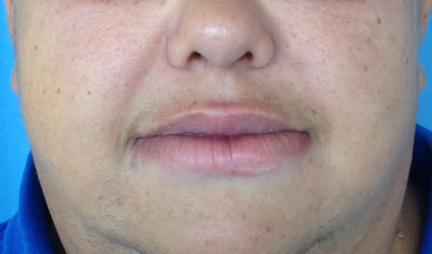 Figure 6: Final result after 1-year follow-up. Normal lower lip size has been achieved, in an adequate proportion to the upper one.