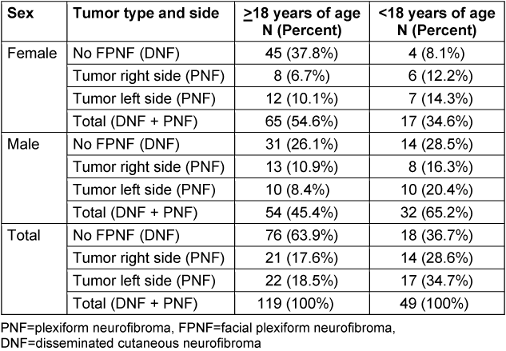 Table 1: Number of patients with neurofibromatosis type 1 and side of the facial plexiform neurofibroma (PNF)