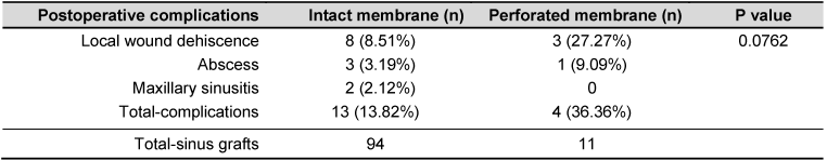 Table 1: Membrane integrity at augmentation procedures with postoperative complications