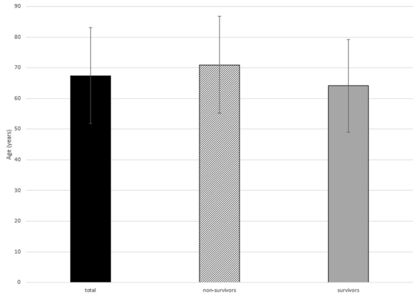 Figure 2: Age of own patient group: total, non-survivors, survivors