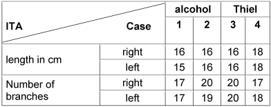 Due to the special nature of Thiel’s fixation, the tissue retains its soft and elastic behavior and obliteration of the vascular system is prevented [14]. Additionally, the vascular system is preserved free of clotted blood. This allows filling materials such as latex masses (Microfil®) to be introduced into the vascular system. After curing, the vascular branches can be macroscopically prepared, or they can be filled with contrast media and reconstructed three-dimensionally using a CT scanner.