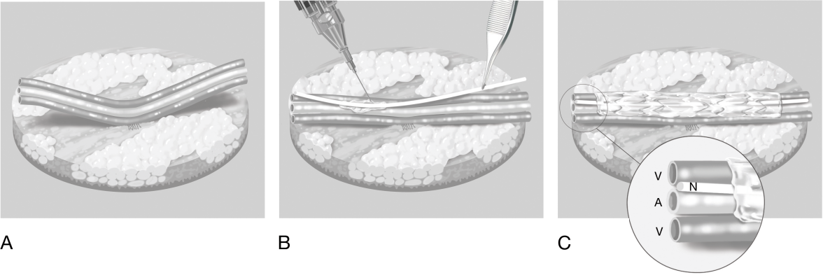 Figure 2: The position of vessels and nerve fixed by the use of fibrin glue (www.medillu-camici.de)