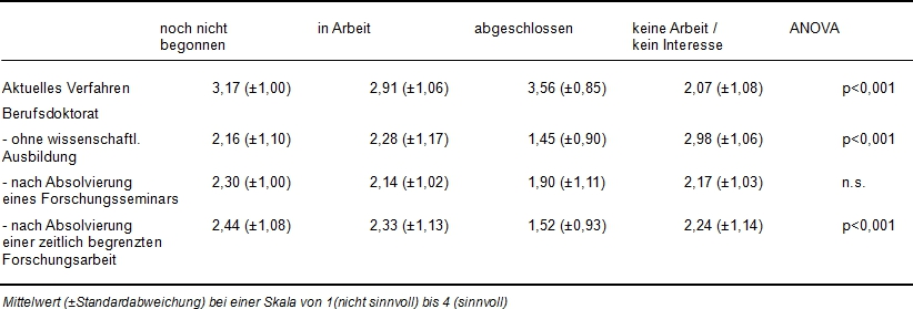 Die Einstellung gegenüber der medizinischen Doktorarbeit hängt vom Stadium der Promotion ab