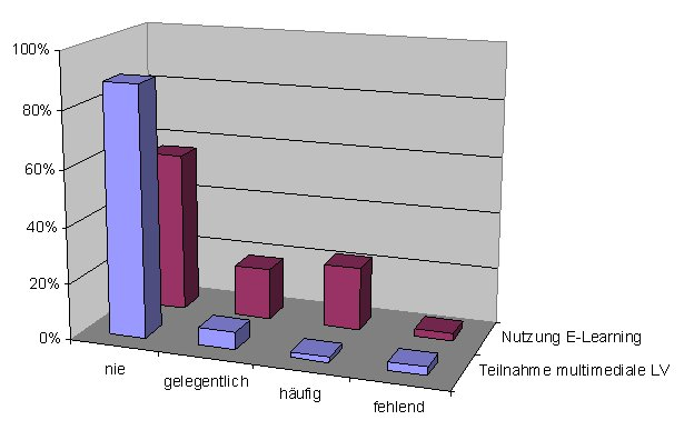 Der Einsatz von E-Learning Angeboten ist für Studenten am ehesten begleitend zu Veranstaltungen, dabei insbesondere zur Verbesserung der Prüfungsvorbereitung, vorstellbar.