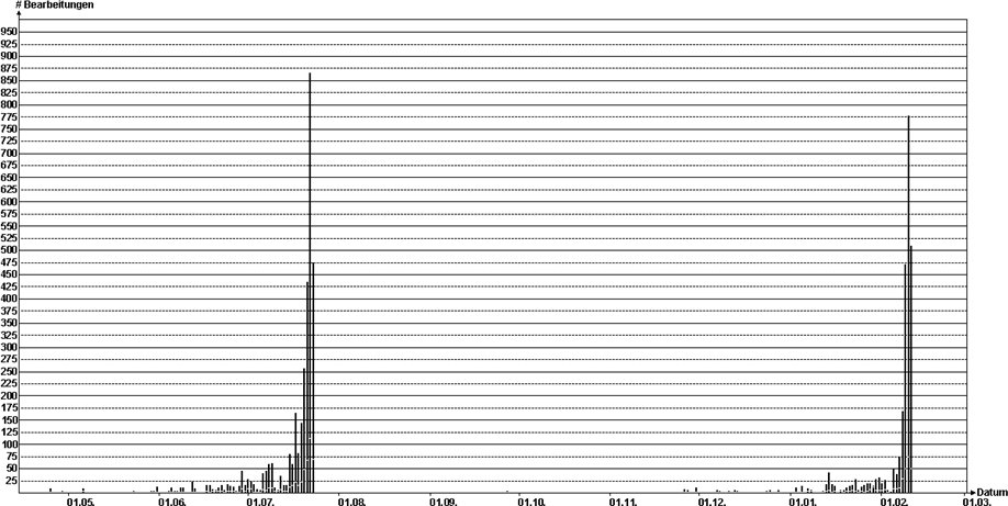 Lediglich in einem Kurs, der klinischen Immunologie/Rheumatologie, zeigt sich ein anderes Bearbeitungsmuster (siehe Abbildung 4 [Abb. 4]). Hier ist das Verhältnis der vollständigen Bearbeitungen in der Klausurwoche zum restlichen Semester ungefähr 1:1 (im SS09 3739 zu 3562 Fallbearbeitungen und im WS 09/10 2767 zu 2701 Fallbearbeitungen). Ein weitere Besonderheit dieses Kurses ist, dass das erfolgreiche Lösen von 10 - 20 Trainingsfälle verpflichtend ist (s. letzte Spalte in Tabelle 1 [Tab. 1]), wobei ein mehrmaliges Bearbeiten eines Falles erlaubt ist (bis SS 09 20 Trainingsfälle, ab WS 09/10 nur noch 10 Trainingsfälle, wobei das erst unmittelbar vor der Klausur geprüft wurde). Eine Hypothese ist, dass die Studierenden ihre Pflicht im Laufe des Kurses erfüllen und dann in der Woche vor der Klausur die Fälle noch einmal wiederholen, was das spezielle Bearbeitungsmuster erklären könnte. Um alternativ zu prüfen, ob die Fälle wegen der Verpflichtung oder freiwillig durchgearbeitet wurden, haben wir untersucht, wie viele Studierende als „Minimalisten“ nur so viele Fälle lösen, wie sie müssen. Im WS08/09 gab es 36, im SS 09 nur 8 und im WS09/10 16 Minimalisten, die höchstens 2 Fälle mehr gelöst haben als sie mussten, d.h. im Schnitt etwa 15% Minimalisten. Die übrigen 85% haben überwiegend alle verfügbaren Fälle gelöst, viele auch mehrfach. Ein weiteres Indiz, dass die hohe Akzeptanz der Fallbearbeitung nicht in erster Linie von der Verpflichtung zum Lösen der Fälle abhängt, ist, dass die Anzahl der Fallbearbeitungen im WS08/09 und im WS09/10 ungefähr gleich war, obwohl im WS09/10 nur 10 statt 20 Fälle verpflichtend waren. Die Spitzenwerte in der Woche vor der Klausur zeigen auch hier, dass die Studierenden die Fallbearbeitung als sehr gute Vorbereitung zur Klausur wahrnehmen.