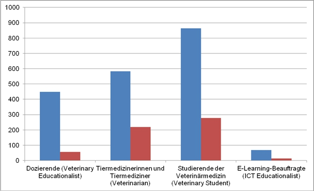Die Gruppe der Veterinary Educationalists, ist mit 448 Personen vertreten, 55 (12,28%) davon stammen aus Deutschland. Von 582 praktizierenden Tierärzten („Veterinarian“), kommen 219 Mitglieder (37,63%) aus Deutschland. Studierende der Veterinärmedizin aus Deutschland sind 277 (32,10%) von den insgesamt 863 Studierenden. Die kleinste Gruppe mit 68 Personen und 14 aus Deutschland (20,59%) wird durch die „ICT Educationalists“ gebildet.
