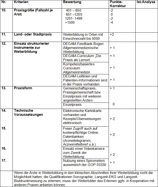 bestimmte Mindest-Kriterien erfüllen, damit ihre Inhaber als allgemeinmedizinische Weiterbilder zugelassen werden können. Aus einem Punkte-Score müssen aus jeder Domäne ein Drittel, aus der Domäne Infrastruktur die Hälfte der Punkte erreicht werden.