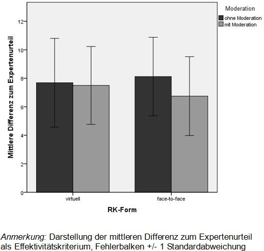 Die Moderation von Gruppen hat einen mittleren Effekt auf die Leistung der Review-Komitees. Dieses Ergebnis ist konform mit anderen empirischen Untersuchungen zur Leistungssteigerung in Gruppen durch Moderation [3], [9], [10].