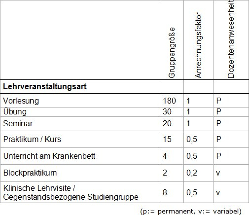 Klassische Übungen wie in der Medizinischen Biometrie werden in der ÄAppO nicht gesondert angesprochen, sind hier aber entsprechend der Klassifikation der Hochschulrektorenkonferenz den theoretischen Lehrveranstaltungen zugeordnet [12]. Die damit verbundenen Konsequenzen für eine personalbezogene Kapazitätsermittlung sollen hier nicht aber thematisiert werden.