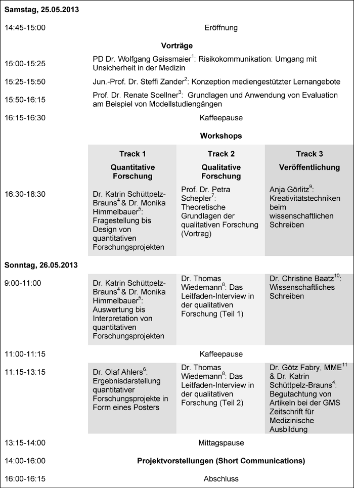 [Symposium "Methodik der medizinischen Ausbildungsforschung" des Ausschusses für Methodik der Ausbildungsforschung der Gesellschaft für Medizinische Ausbildung e.V. (GMA) 25./26. Mai 2013 im Lernzentrum der Charité Berlin]