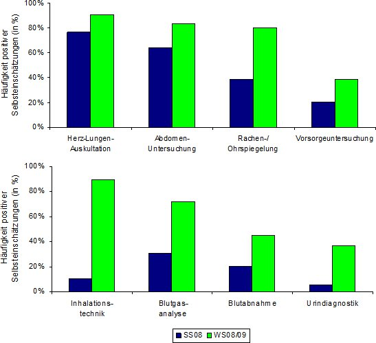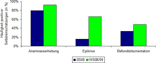 Die Auswertung des Selbsteinschätzungs-Teils erfolgte anhand eines deskriptiven Vergleichs der genannten Häufigkeit positiver Selbsteinschätzungen der Studierenden.