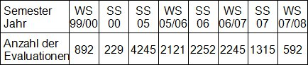 Tabelle 1: Anzahl der evaluierenden Teilnehmer über alle evaluierten Lehrveranstaltungen. (WS) Wintersemester; (SS) Sommersemester.