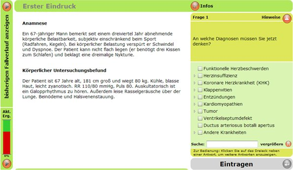 Abbildung 1: Sreenshot aus einem kardiologischen Trainingsfall in CaseTrain.