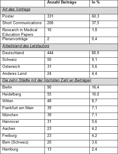 Tabelle 2: Art und Herkunft der Beiträge deutschsprachiger Autoren auf den AMEE-Konferenzen 2005-2013 (n=549)