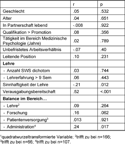 Tabelle 4: Korrelationen von ausgewählten Variablen mit der Effort-Reward-Imbalance1