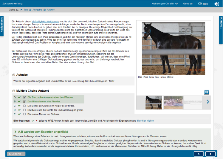Um VPs mit einem definierten Schwierigkeitsniveau anbieten zu können, wurden sowohl die Inhalte dem Wissensstand entsprechend abgestimmt, als auch die lineare vorgegebene Navigation absichtlich gewählt. Gemäß den Prinzipien zum Design von virtuellen Patienten [32], werden eine lineare Navigation und ein einheitliches Grundgerüst von den Studierenden bevorzugt [33], welche aber nicht immer realistisch sind. Darüber hinaus wird eine sofortige, spezifische Rückmeldung zu jeder getroffenen Entscheidung gewünscht, welche in Form von Antwort- oder zusätzlichen Expertenkommentaren geliefert wurden.