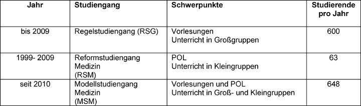 Der Modellstudiengang Medizin, seit 2010 für alle Studierenden verbindlich, kombinierte Regel- und Reformcurriculum mit PBL als Standardlehrformat. Die Planung von 40 PBL- Gruppen pro Semester erforderte 80- 100 neue PBL Tutoren jährlich.