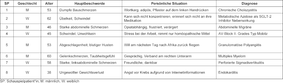 Tabelle 1: Rollen der Schauspielpatient*innen