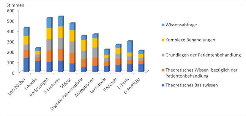 Abbildung 1: Medien und Lernzwecke. Diese Abbildung zeigt die kumulative Anzahl der Stimmen für jede Kategorie