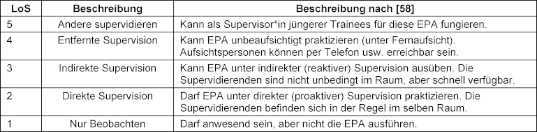 In einer früheren Studie, in der die prEPAred-App [23] verwendet wurde, gab es in 35,6% der Assessments eine Divergenz der Bewertung des LoS zwischen Trainees und Supervidierenden. Wir bestätigten, dies in unserer Studie mit 33% der Fälle, und es zeigte sich auch die gleiche Tendenz, dass Trainees sich selbst etwas weniger selbständig einschätzten als ihre Supervidierenden.