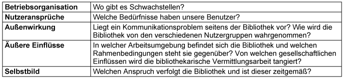 Die Dimension Nutzerorientierung gehört zum Kern jeder Bibliotheksarbeit, was die ständige Reflexion über die Dienste und ihre beständige Weiterentwicklung oder Neuentwicklungen mit einschließt. Mittlerweile gibt es zahlreiche Handbücher und Checklisten für Strategien der Nutzerorientierung bzw. -bindung, in denen der Fokus auf der Art der Kommunikation sowie der Produktivität und Effektivität der Dienstleistungen liegt ([1], Bd. 1, 3.5.10:1ff.). Um die Nutzung der Dienstleistung durch die jeweilige Zielgruppe genau verstehen zu können, bedarf es genauer Kenntnisse über die Informationsbedürfnisse. Dazu gehört auch die Beobachtung als Datensammlung zum Informationsbedarf ([1], Bd. 3, 8.2.1:7). Außerdem kann jeder (Informations-)Prozess dazu genutzt werden, durch Rückkopplung noch besser die Wünsche und Bedürfnisse der Nutzer kennenzulernen. Hilfreich ist dabei stets, die Prinzipien der ständigen Verbesserung und Nutzerorientierung im Blick zu behalten.