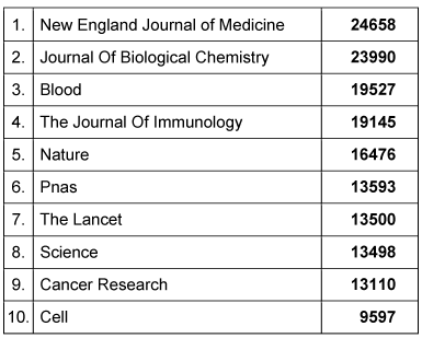 Tabelle 2: Liste der 10 topgenutzten E-Journals der Universitätsbibliothek der Med Uni Wien 2008