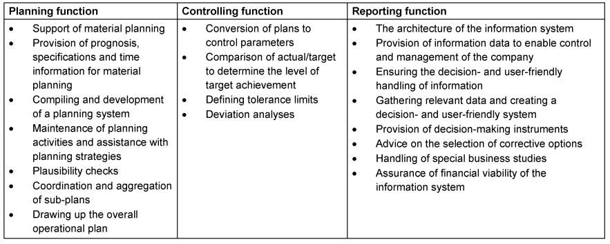 Information management will thus be regarded as a support function for performance management from this point onwards. Thus comprehensive methodical performance management comprises the three functions of planning, controlling and reporting, as well as the technical function of IT.