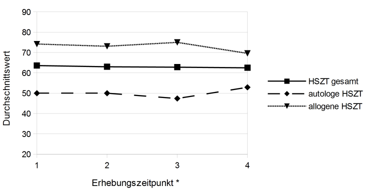 Die Fragebögen wurden so konzipiert, dass umfassende soziodemographische und transplantationsassoziierte Faktoren ermittelt werden konnten. Außerdem wurde zu jedem Zeitpunkt der aktuelle Erwerbstätigkeitsstatus bzw. eine fortbestehende Arbeitsunfähigkeit oder eine bereits eingeleitete Berentung abgefragt. Zur Ermittlung der Rate an primär nach hämatologischer Stammzelltransplantation wieder ins Erwerbsleben integrierten Patienten wurden nur Patienten berücksichtigt, die kein Krankheitsrezidiv erlitten.
