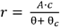 Hierbei ist r der Radius, gemessen vom Modiolus zur lateralen Wand der Cochlea. A ist die Strecke vom runden Fenster zur gegenüberliegenden medialen Begrenzung der Cochlea. θ ist der Einführungswinkel (in Radiant) und θc ist das dem Verhältnis der Strecken A/B in Radiant. Escudé et al. [4] konnten durch Analyse von N=42 Innenohren zeigen, dass das Verhältnis A/B relativ konstant ist (A/B=1,32). Dieses Verhältnis eingesetzt in Gleichung 4 ergibt ein θc≈4,1 rad.