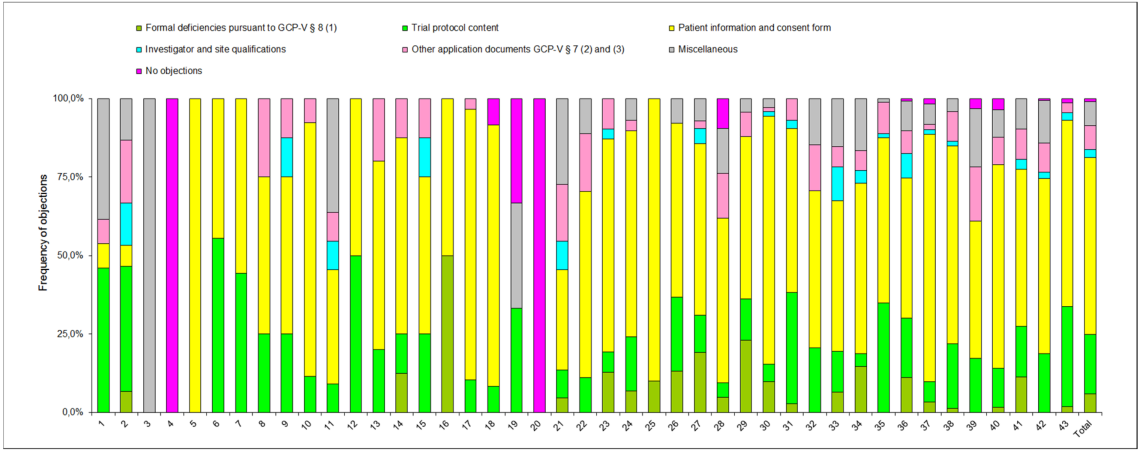 Figure 4: Frequency of objections in percent; breakdown among the 43 ECs involved in the survey