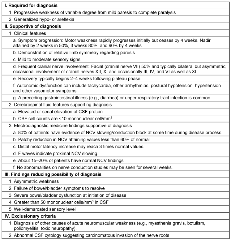 Table 1: Diagnostic features of acute inflammatory demyelinating polyneuropathy (AIDP)