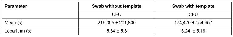 No significant difference in number of cfu CFU was detectable between the two sampling methods. Sampling with the template led to a lower standard deviation, which can be attributed to the defined swab area (Table 3 [Tab. 3]). Therefore, this sampling technique tends to be more favorable.