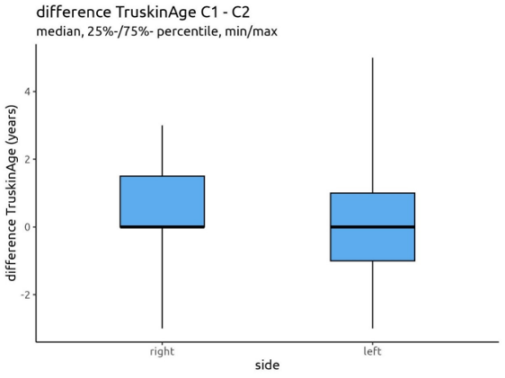 Figure 7: Difference in Truskin Age® scores between C1 and C2 for both facial sides