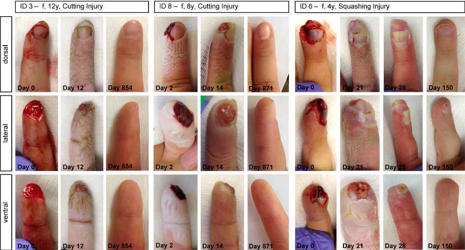 fingertip regeneration, fingertip amputation, fingertip injury, infection, wound fluid, pediatric surgery, occlusive dressings