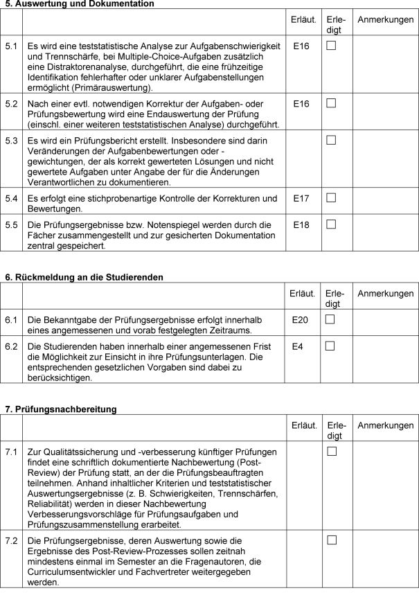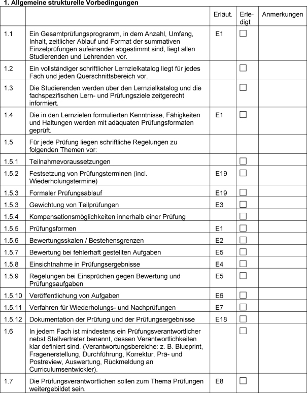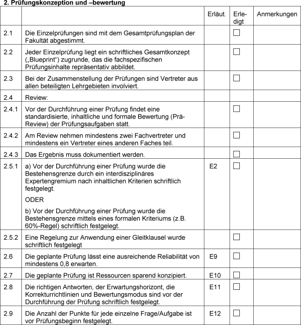 Durch die Anwendung der Leitlinien kann im Rahmen einer institutionellen Selbstevaluation der Fakultäten sichergestellt werden, dass die Qualität der Prüfungen den allgemein anerkannten internationalen Standards entsprechen [3], [4], [5], [6], [7].