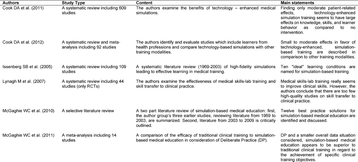 [41] McGaghie WC, Issenberg SB, Petrusa ER, Scalese RJ. A critical review of simulation-based medical education research: 2003-2009. Med Educ. 2010;44(1):50-63. DOI: 10.1111/j.1365-2923.2009.03547.x